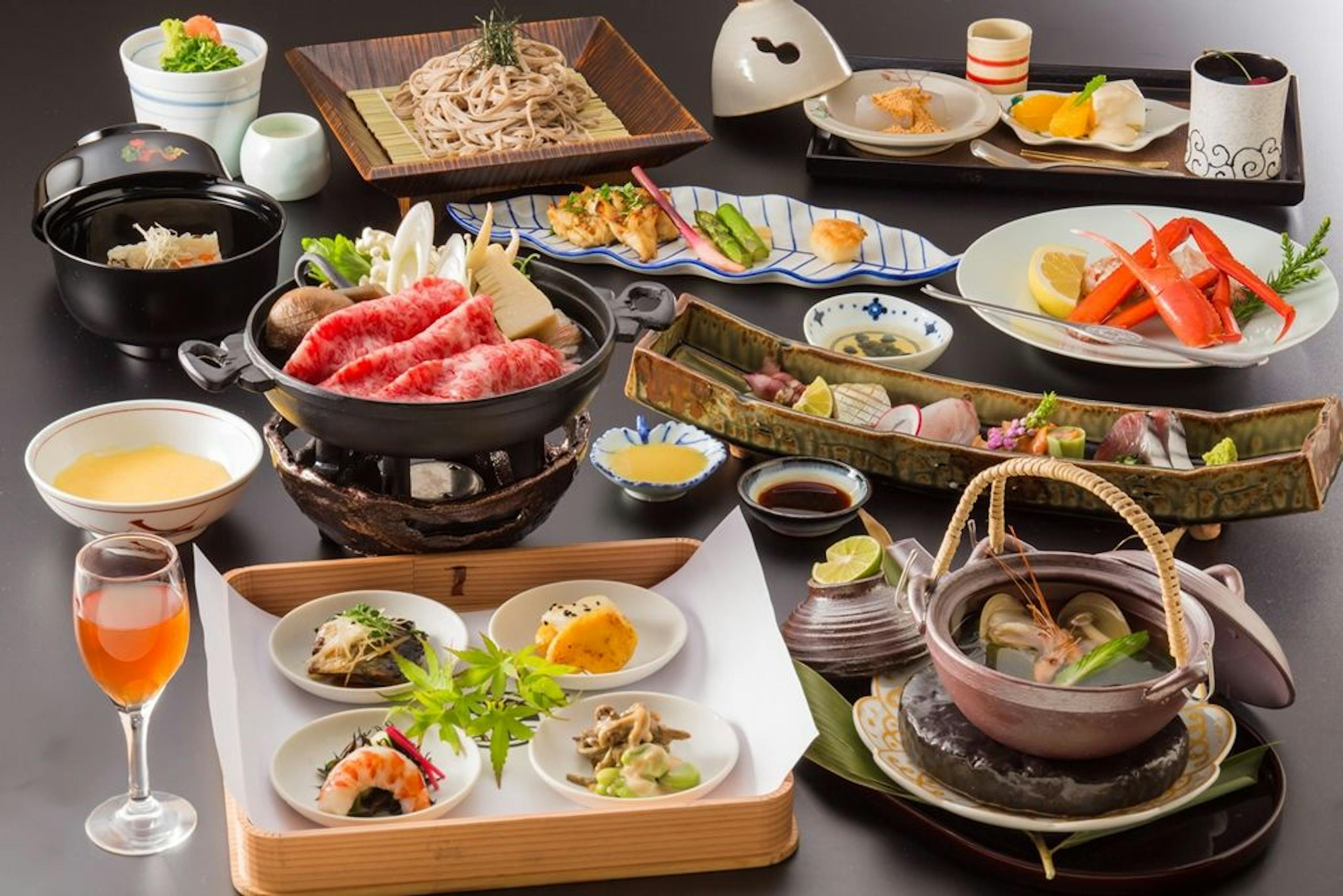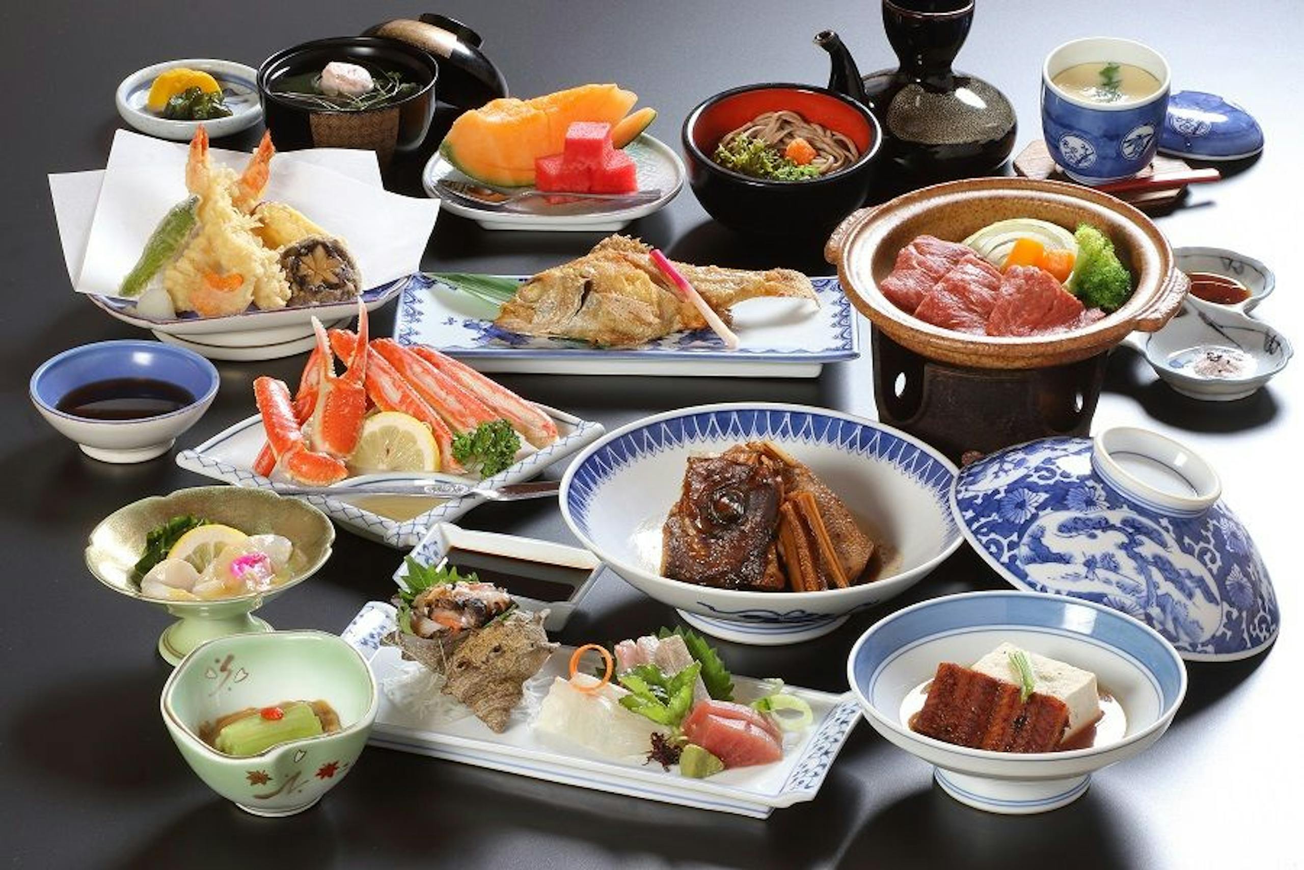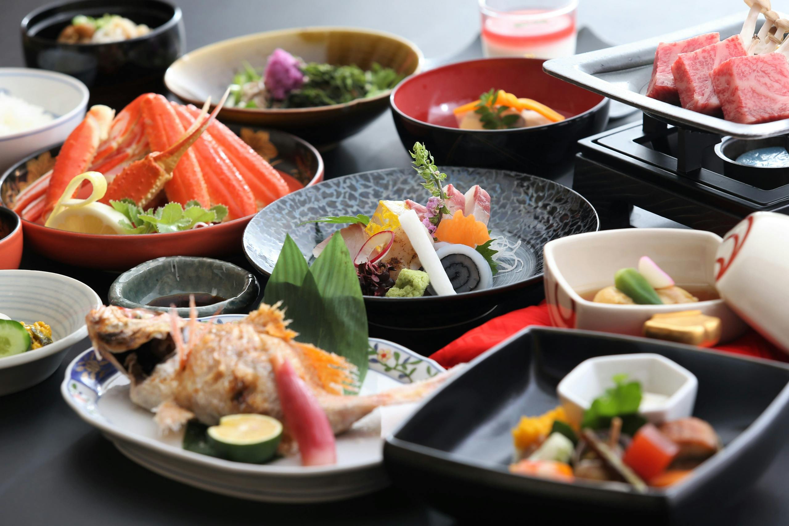 日本海の新鮮な魚貝類・地元の旬の食材を贅沢につかい、おもてなしの心で迎えてくれます。